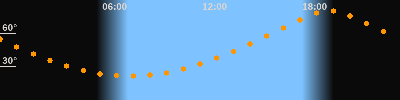 | Höchster Stand (Kulmination) | 19:47 Uhr (h = 80,1°) |