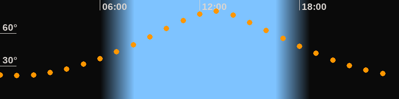 | Höchster Stand (Kulmination) | 12:53 Uhr (h = 80,1°) |