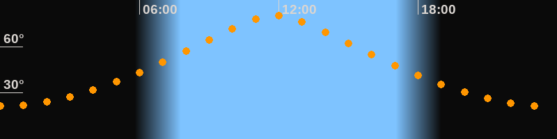 | Höchster Stand (Kulmination) | 11:50 Uhr (h = 80,1°) |