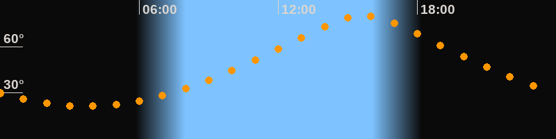 | Höchster Stand (Kulmination) | 15:40 Uhr (h = 80,1°) |