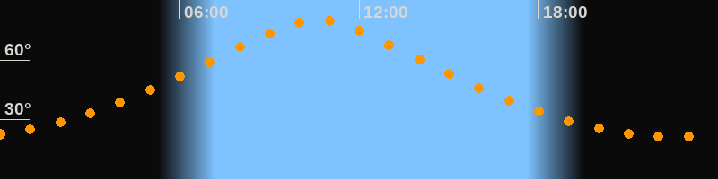 | Höchster Stand (Kulmination) | 10:34 Uhr (h = 80,1°) |