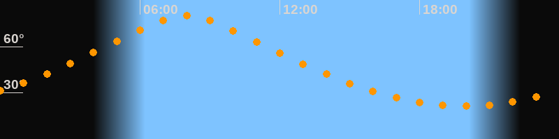 | Höchster Stand (Kulmination) | 07:58 Uhr (h = 80,1°) |
