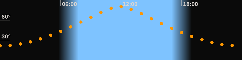 | Höchster Stand (Kulmination) | 11:51 Uhr (h = 80,1°) |