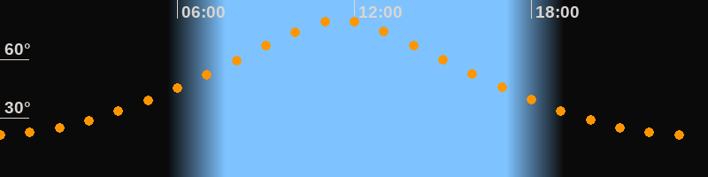 | Höchster Stand (Kulmination) | 11:31 Uhr (h = 80,1°) |