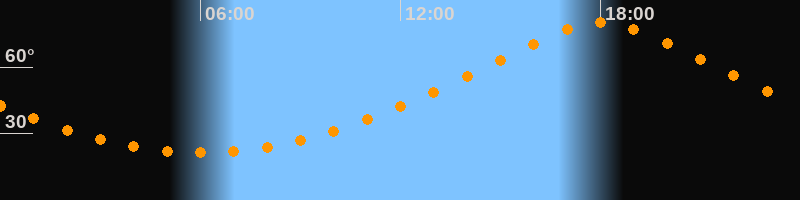 | Höchster Stand (Kulmination) | 18:01 Uhr (h = 80,1°) |