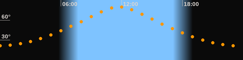 | Höchster Stand (Kulmination) | 11:45 Uhr (h = 80,1°) |