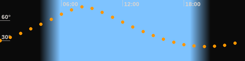 | Höchster Stand (Kulmination) | 08:12 Uhr (h = 80,1°) |