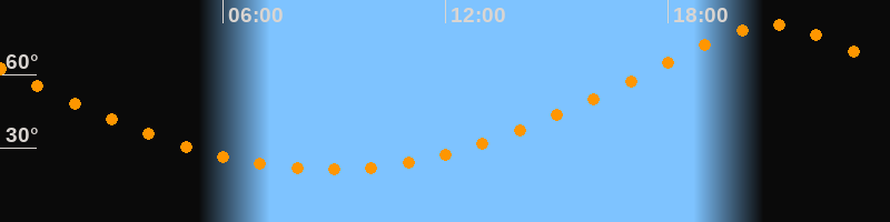 | Höchster Stand (Kulmination) | 20:49 Uhr (h = 80,1°) |