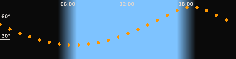 | Höchster Stand (Kulmination) | 19:31 Uhr (h = 80,1°) |