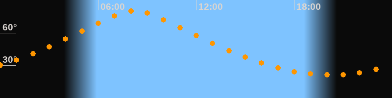 | Höchster Stand (Kulmination) | 08:13 Uhr (h = 80,1°) |
