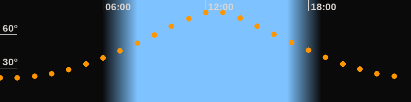| Höchster Stand (Kulmination) | 12:31 Uhr (h = 80,1°) |