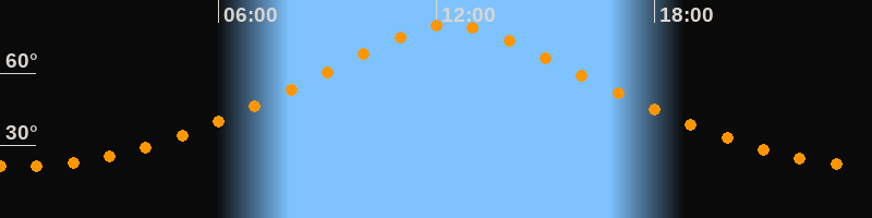 | Höchster Stand (Kulmination) | 12:23 Uhr (h = 80,1°) |