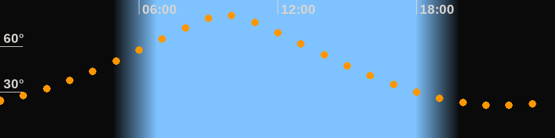 | Höchster Stand (Kulmination) | 09:47 Uhr (h = 80,1°) |