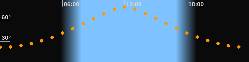 | Höchster Stand (Kulmination) | 12:01 Uhr (h = 80,1°) |