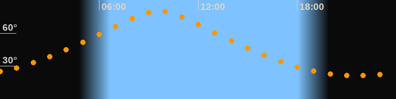 | Höchster Stand (Kulmination) | 09:36 Uhr (h = 80,1°) |