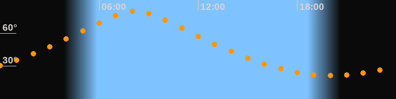 | Höchster Stand (Kulmination) | 08:10 Uhr (h = 80,1°) |