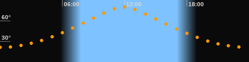 | Höchster Stand (Kulmination) | 11:54 Uhr (h = 80,1°) |