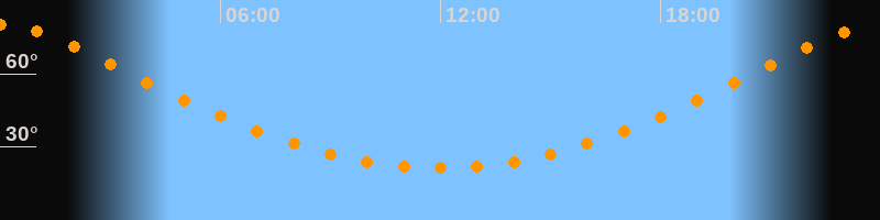 | Höchster Stand (Kulmination) | 23:58 Uhr (h = 80,1°) |
