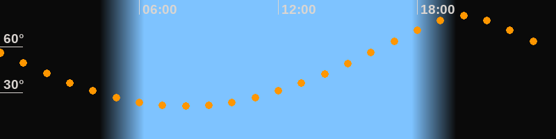 | Höchster Stand (Kulmination) | 19:59 Uhr (h = 80,1°) |