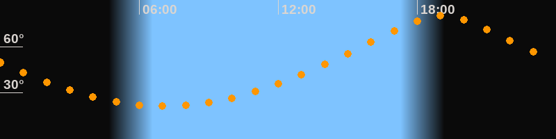 | Höchster Stand (Kulmination) | 19:04 Uhr (h = 80,1°) |