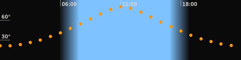 | Höchster Stand (Kulmination) | 12:11 Uhr (h = 80,1°) |