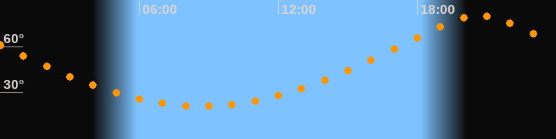 | Höchster Stand (Kulmination) | 20:40 Uhr (h = 80,1°) |