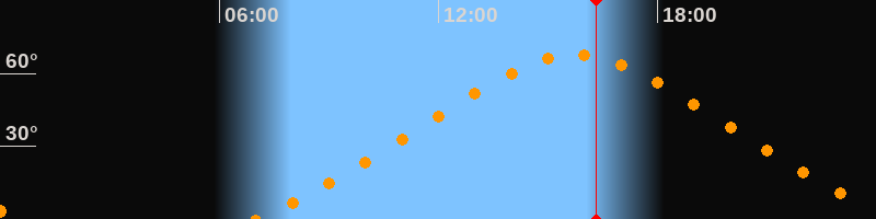 | Höchster Stand (Kulmination) | 15:45 Uhr (h = 67,6°) |
