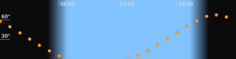 | Aufgang | 13:07 Uhr im Nordosten (αAz = 40,5°) |