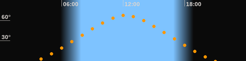 | Höchster Stand (Kulmination) | 12:12 Uhr (h = 67,6°) |