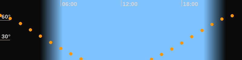 | Untergang | 08:23 Uhr im Nordwesten (αAz = 319,5°) |
