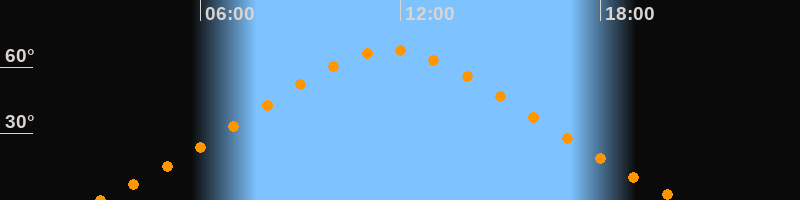 | Höchster Stand (Kulmination) | 11:42 Uhr (h = 67,6°) |