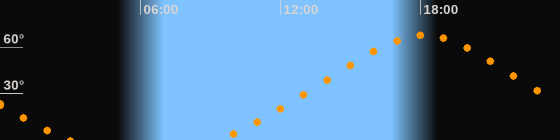 | Höchster Stand (Kulmination) | 18:08 Uhr (h = 67,6°) |
