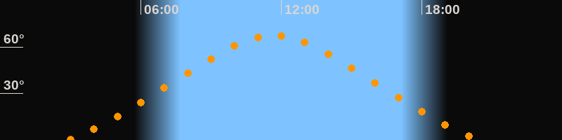 | Höchster Stand (Kulmination) | 11:40 Uhr (h = 67,6°) |