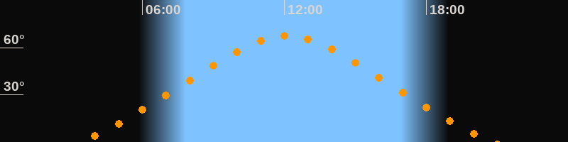 | Höchster Stand (Kulmination) | 12:05 Uhr (h = 67,6°) |
