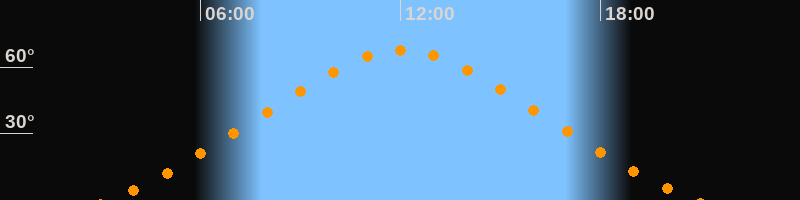 | Höchster Stand (Kulmination) | 12:02 Uhr (h = 67,6°) |