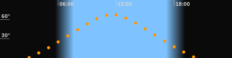 | Höchster Stand (Kulmination) | 11:34 Uhr (h = 67,6°) |