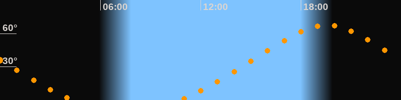 | Höchster Stand (Kulmination) | 19:32 Uhr (h = 67,6°) |