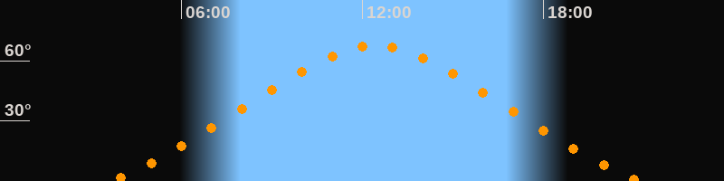 | Höchster Stand (Kulmination) | 12:26 Uhr (h = 67,6°) |