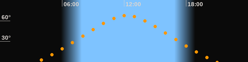 | Höchster Stand (Kulmination) | 12:14 Uhr (h = 67,6°) |