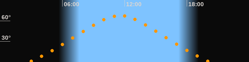 | Höchster Stand (Kulmination) | 11:31 Uhr (h = 67,6°) |