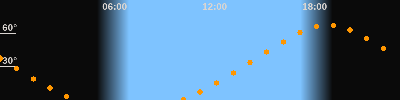 | Höchster Stand (Kulmination) | 19:40 Uhr (h = 67,6°) |