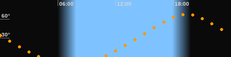 | Höchster Stand (Kulmination) | 19:21 Uhr (h = 67,6°) |
