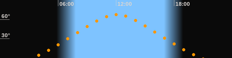 | Höchster Stand (Kulmination) | 12:03 Uhr (h = 67,6°) |