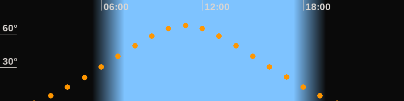 | Höchster Stand (Kulmination) | 11:00 Uhr (h = 67,6°) |