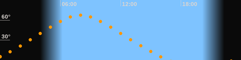 | Höchster Stand (Kulmination) | 08:00 Uhr (h = 67,6°) |