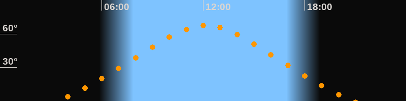 | Höchster Stand (Kulmination) | 12:08 Uhr (h = 67,6°) |