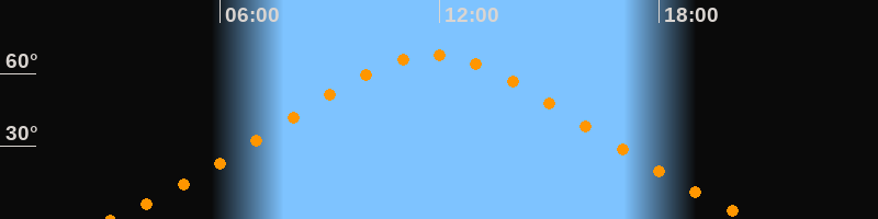 | Höchster Stand (Kulmination) | 11:48 Uhr (h = 67,6°) |