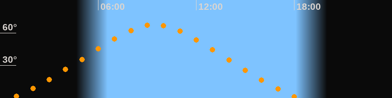 | Höchster Stand (Kulmination) | 09:27 Uhr (h = 67,6°) |