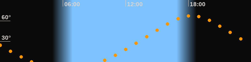 | Höchster Stand (Kulmination) | 18:19 Uhr (h = 67,6°) |