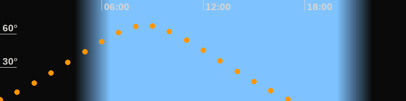 | Höchster Stand (Kulmination) | 08:34 Uhr (h = 67,6°) |
